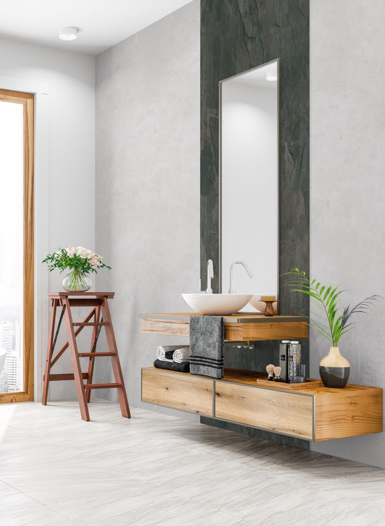 ROCKO Tiles sind zur Anwendung in Innenräumen jeglicher Art und besonders für Feucht- und Nassräume, wie beispielsweise Bäder, Waschräume, Küchen, Kellerräume geeignet.
