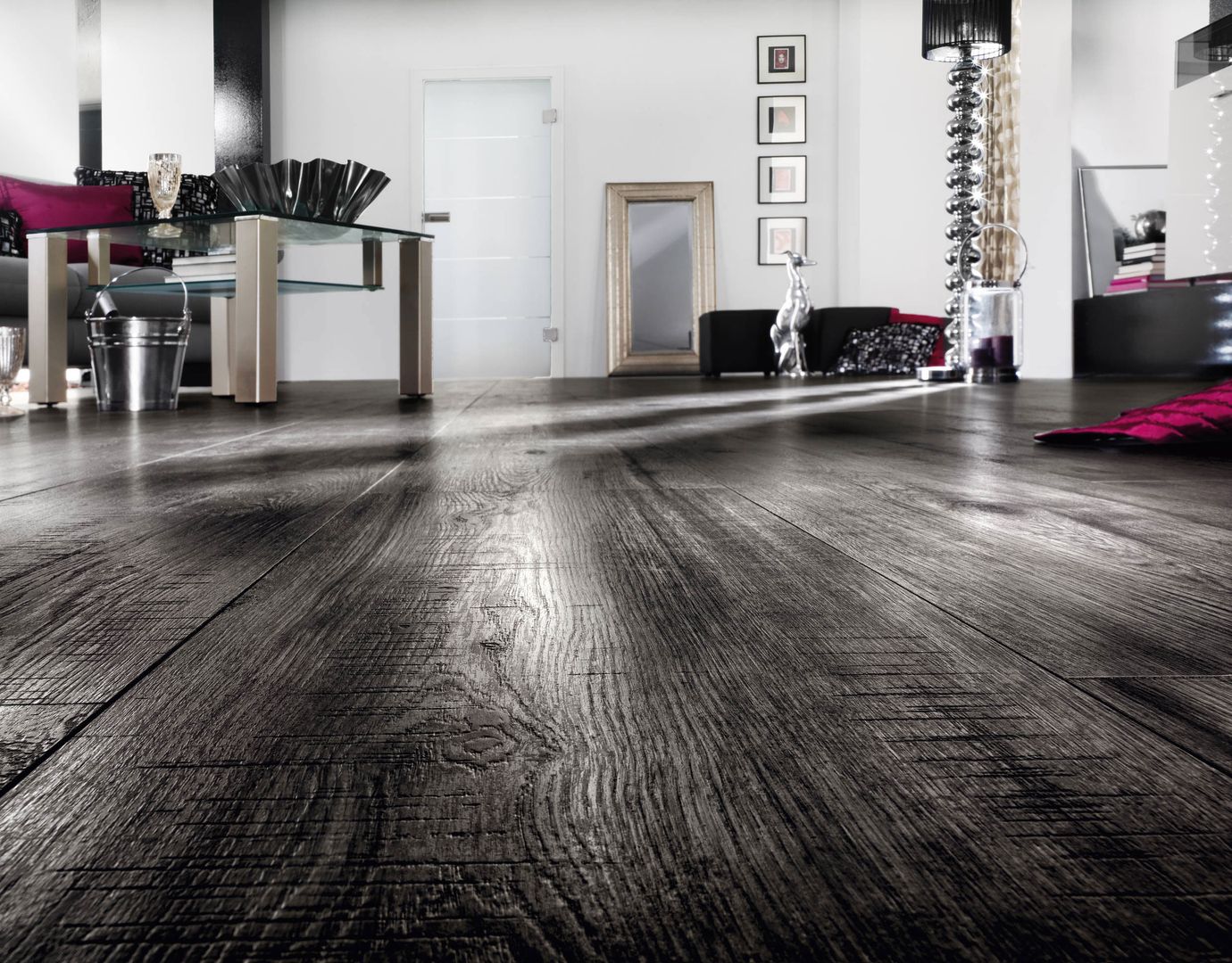 Was für den Laminatboden spricht: Zunächst einmal ist er sehr robust und besonders strapazierfähig. Diese Eigenschaften verdankt er den unter hohem Druck und ebensolchen Temperaturen gepressten Schichten. Die Deckschicht garantiert außerdem eine hohe Abriebfestigkeit. Laminat ist ein reiner Dekorboden, daher ist durch den digitalen Druck auf der Deckschicht praktisch alles an Design und Gestaltung möglich. Favorit ist aber immer noch die gute alte Holzoptik, die dem Parkett meist zum Verwechseln ähnlich sieht. Außerdem sind Laminate perfekt für Fußbodenheizungen geeignet – und meist sogar nebelfeucht wischbar, also äußerst pflegeleicht.